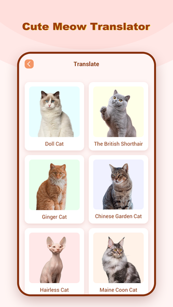 Cute Meow Translator är en röstöversättare som kan spela in och översätta ljudet av katter. Det är en mycket enkel applikation. Ljudet av katter översätts snabbt och enkelt, så att du kan kommunicera med dem och njuta av deras sällskap.
